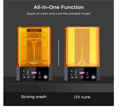 La Creality UW-02 es una estación de lavado y curado todo en uno, diseñada para optimizar el posprocesamiento de modelos impresos en resina.